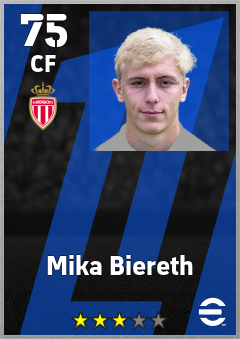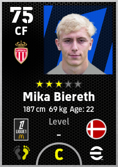 . Mika Biereth is a Center Forward footballer from Denmark who plays for As Monaco in eFootball 2026.