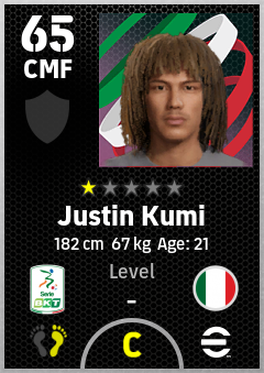 . Justin Kumi is a Center Midfielder footballer from Italy who plays for Avellino Bv in eFootball 2026.