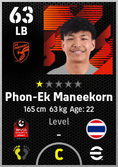 . Phon-Ek Maneekorn is a Left Back footballer from Thailand who plays for Pt Prachuap Fc in eFootball 2026.