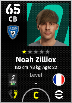 . Noah Zilliox is a Center Back footballer from France who plays for Sc Bastia in eFootball 2026.