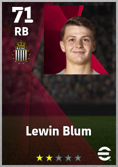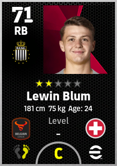 . Lewin Blum is a Right Back footballer from Switzerland who plays for Charleroi Zw in eFootball 2026.