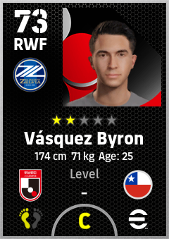 Vásquez Byron is a Right Wing Forward footballer from Chile who plays for Fc Machida Zelvia in eFootball 2026.