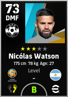 . Nicólas Watson is a Defensive Midfielder footballer from Argentina who plays for Nueva Pompeya Nb in eFootball 2026.