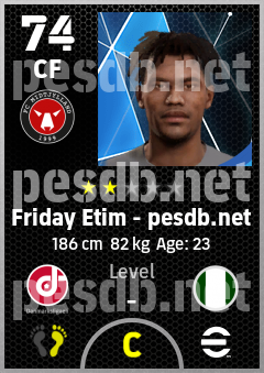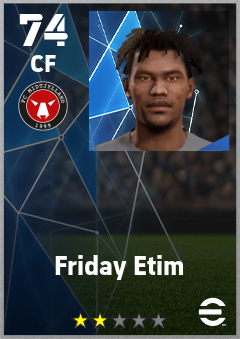 . Friday Etim is a Center Forward footballer from Nigeria who plays for Midtjylland Sr in eFootball 2026.