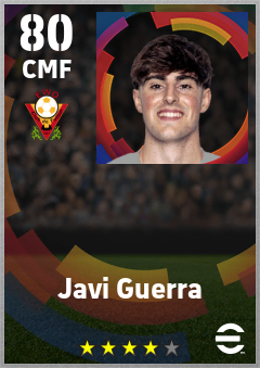 . Javi Guerra is a Center Midfielder footballer from Spain who plays for Valencia Bn in eFootball 2026.