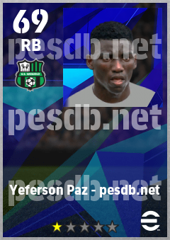 . Yeferson Paz is a Right Back footballer from Colombia who plays for Sassuolo Nv in eFootball 2026.