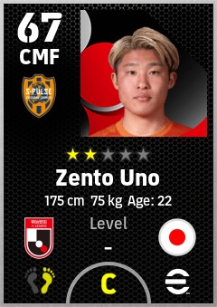 . Zento Uno is a Center Midfielder footballer from Japan who plays for Shimizu S-Pulse in eFootball 2026.