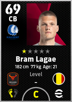 . Bram Lagae is a Center Back footballer from Belgium who plays for Gent Bw in eFootball 2026.