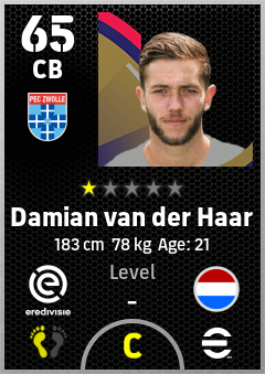. Damian Van Der Haar is a Center Back footballer from Netherlands who plays for Pec Zwolle in eFootball 2026.