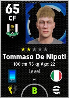 . Tommaso De Nipoti is a Center Forward footballer from Italy who plays for Castellón Nb in eFootball 2026.