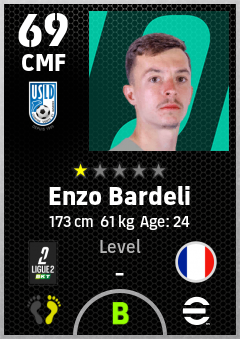 . Enzo Bardeli is a Center Midfielder footballer from France who plays for Usl Dunkerque in eFootball 2026.