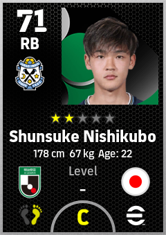 . Shunsuke Nishikubo is a Right Back footballer from Japan who plays for Jubilo Iwata in eFootball 2026.