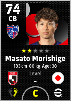 . Masato Morishige is a Center Back footballer from Japan who plays for Fc Tokyo in eFootball 2026.