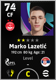 . Marko Lazetić is a Center Forward footballer from Serbia who plays for Aberdeen Fc in eFootball 2026.