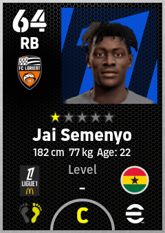 . Jai Semenyo is a Right Back footballer from Ghana who plays for Fc Lorient in eFootball 2026.