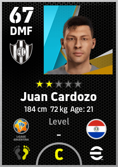 . Juan Cardozo is a Defensive Midfielder footballer from Paraguay who plays for Santiago Del Estero Bn in eFootball 2026.