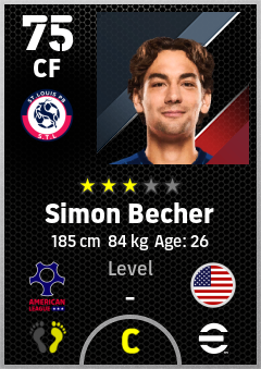 . Simon Becher is a Center Forward footballer from United States who plays for St. Louis Pb in eFootball 2026.