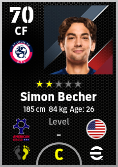 . Simon Becher is a Center Forward footballer from United States who plays for St. Louis Pb in eFootball 2026.
