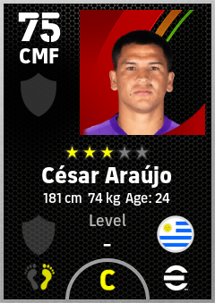 . César Araújo is a Center Midfielder footballer from Uruguay who plays for Orlando Pw in eFootball 2026.