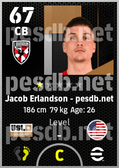 . Jacob Erlandson is a Center Back footballer from United States who plays for Loudoun United Fc in eFootball 2026.