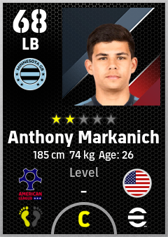 . Anthony Markanich is a Left Back footballer from United States who plays for Minnesota Gb in eFootball 2026.