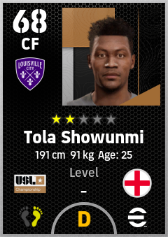 . Tola Showunmi is a Center Forward footballer from England who plays for Louisville City Fc in eFootball 2026.