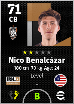 . Nico Benalcázar is a Center Back footballer from United States who plays for Orange County Sc in eFootball 2026.