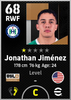 . Jonathan Jiménez is a Right Wing Forward footballer from United States who plays for Hartford Athletic in eFootball 2026.