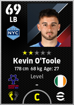 . Kevin O'toole is a Left Back footballer from Republic Of Ireland who plays for New York City B in eFootball 2026.