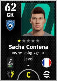 . Sacha Contena is a Goalkeeper footballer from France who plays for Sc Bastia in eFootball 2026.