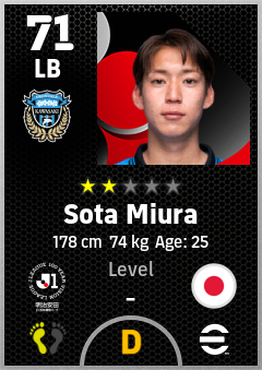 . Sota Miura is a Left Back footballer from Japan who plays for Kawasaki Frontale in eFootball 2026.