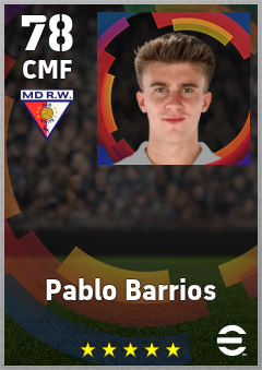 . Pablo Barrios is a Center Midfielder footballer from Spain who plays for Madrid Rosas Rb in eFootball 2026.