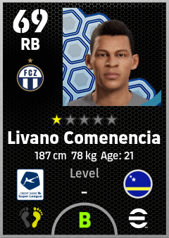 . Livano Comenencia is a Right Back footballer from Curaçao who plays for Zürich Wb in eFootball 2026.