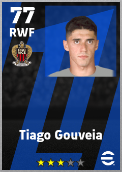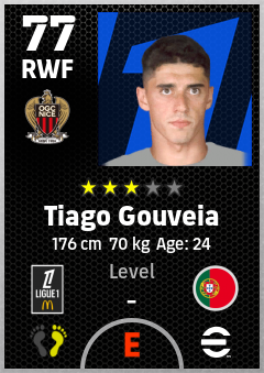 . Tiago Gouveia is a Right Wing Forward footballer from Portugal who plays for Ogc Nice in eFootball 2026.