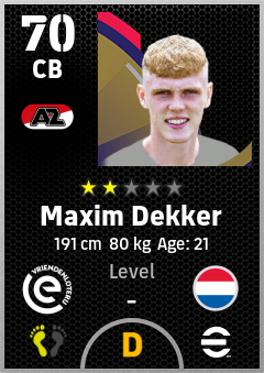 . Maxim Dekker is a Center Back footballer from Netherlands who plays for Az in eFootball 2026.