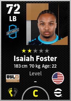 . Isaiah Foster is a Left Back footballer from United States who plays for Colorado Springs Fc in eFootball 2026.
