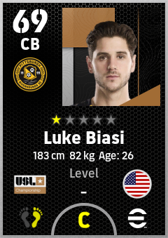 . Luke Biasi is a Center Back footballer from United States who plays for Pittsburgh Riverhounds in eFootball 2026.