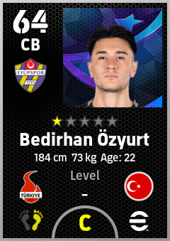 . Bedirhan Özyurt is a Center Back footballer from Türkiye who plays for Eyüpspor in eFootball 2026.