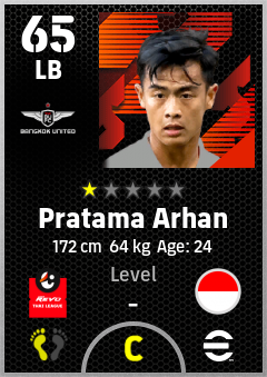. Pratama Arhan is a Left Back footballer from Indonesia who plays for True Bangkok United Fc in eFootball 2026.