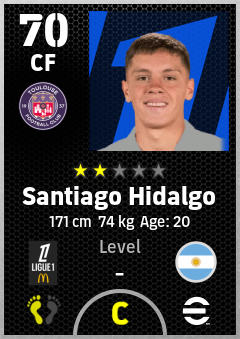 . Santiago Hidalgo is a Center Forward footballer from Argentina who plays for Toulouse Fc in eFootball 2026.