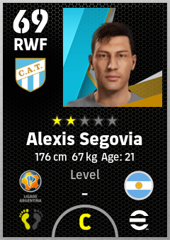 . Alexis Segovia is a Right Wing Forward footballer from Argentina who plays for Tucumán Ab in eFootball 2026.