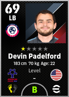 . Devin Padelford is a Left Back footballer from United States who plays for St. Louis Pb in eFootball 2026.