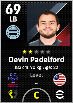 . Devin Padelford is a Left Back footballer from United States who plays for Minnesota Gb in eFootball 2026.