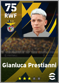 . Gianluca Prestianni is a Right Wing Forward footballer from Argentina who plays for Sl Benfica in eFootball 2026.