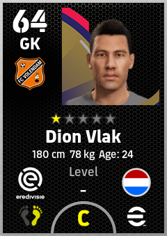 . Dion Vlak is a Goalkeeper footballer from Netherlands who plays for Fc Volendam in eFootball 2026.