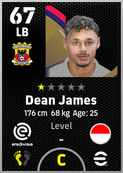 . Dean James is a Left Back footballer from Indonesia who plays for Go Ahead Eagles in eFootball 2026.