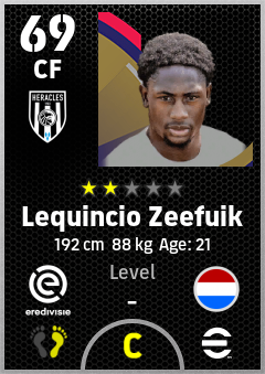 . Lequincio Zeefuik is a Center Forward footballer from Netherlands who plays for Heracles Almelo in eFootball 2026.