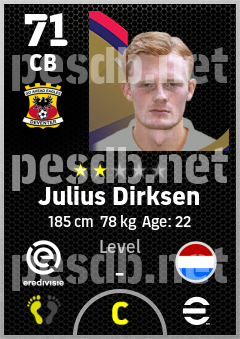 . Julius Dirksen is a Center Back footballer from Netherlands who plays for Go Ahead Eagles in eFootball 2026.