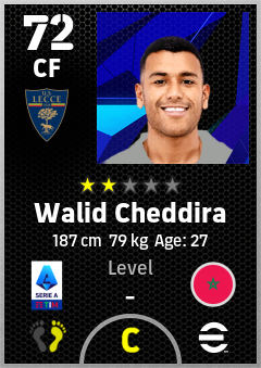 . Walid Cheddira is a Center Forward footballer from Morocco who plays for Lecce Gr in eFootball 2026.