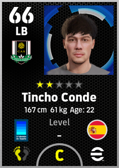 . Tincho Conde is a Left Back footballer from Spain who plays for Castellón Nb in eFootball 2026.